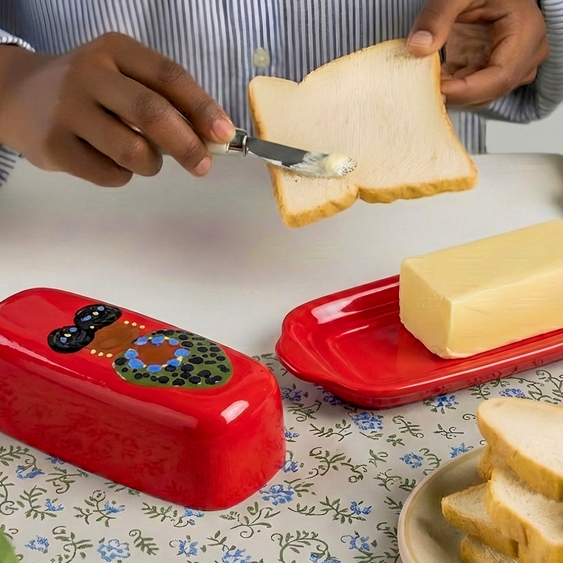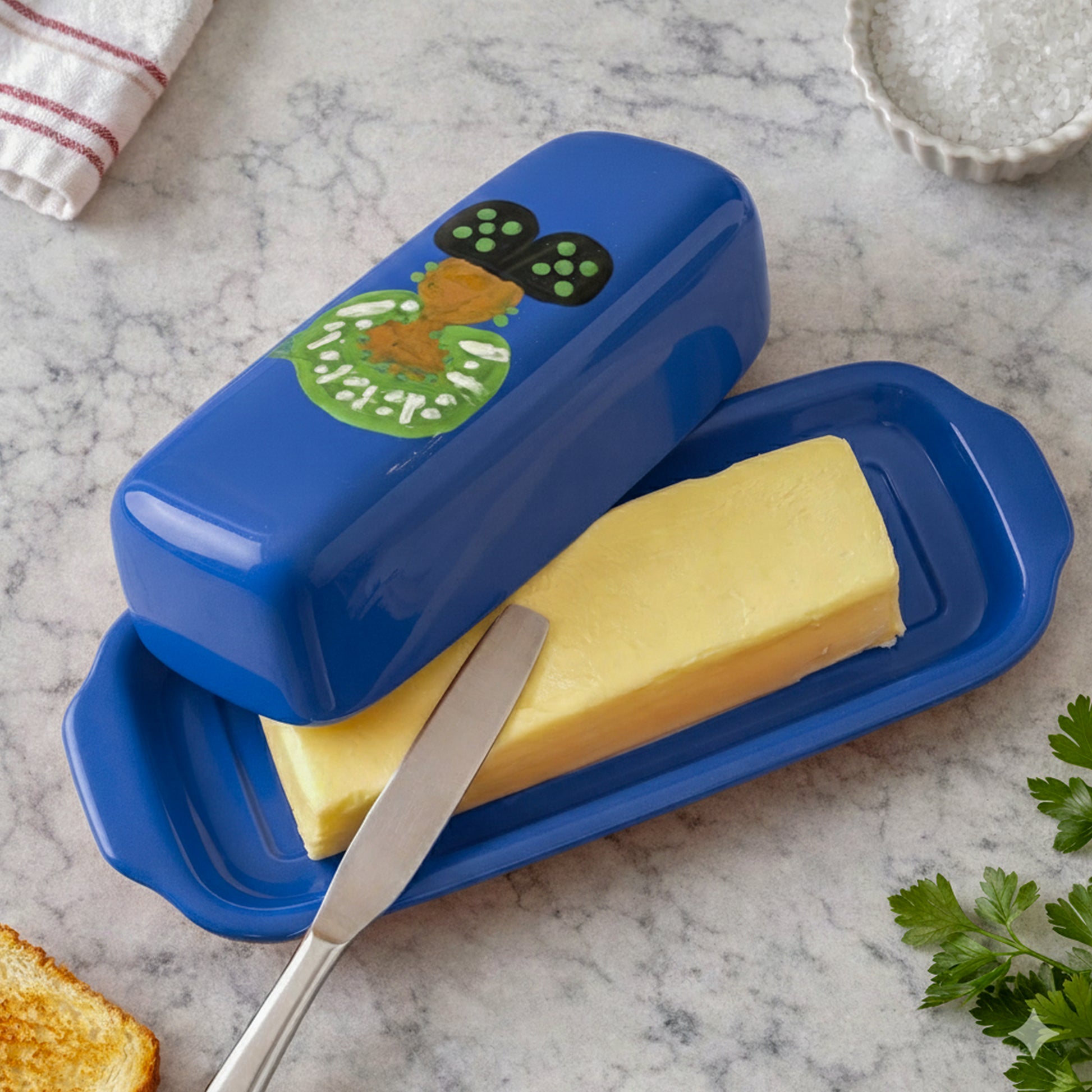 Lovingly handmade from high-quality ceramic and finished with a food-safe glaze, each butter dish is signed by Eve Lynne, giving it a personal and meaningful touch. It’s a functional work of art—sturdy enough for everyday use yet beautiful enough to display—adding personality, warmth, and artistry to any kitchen.
